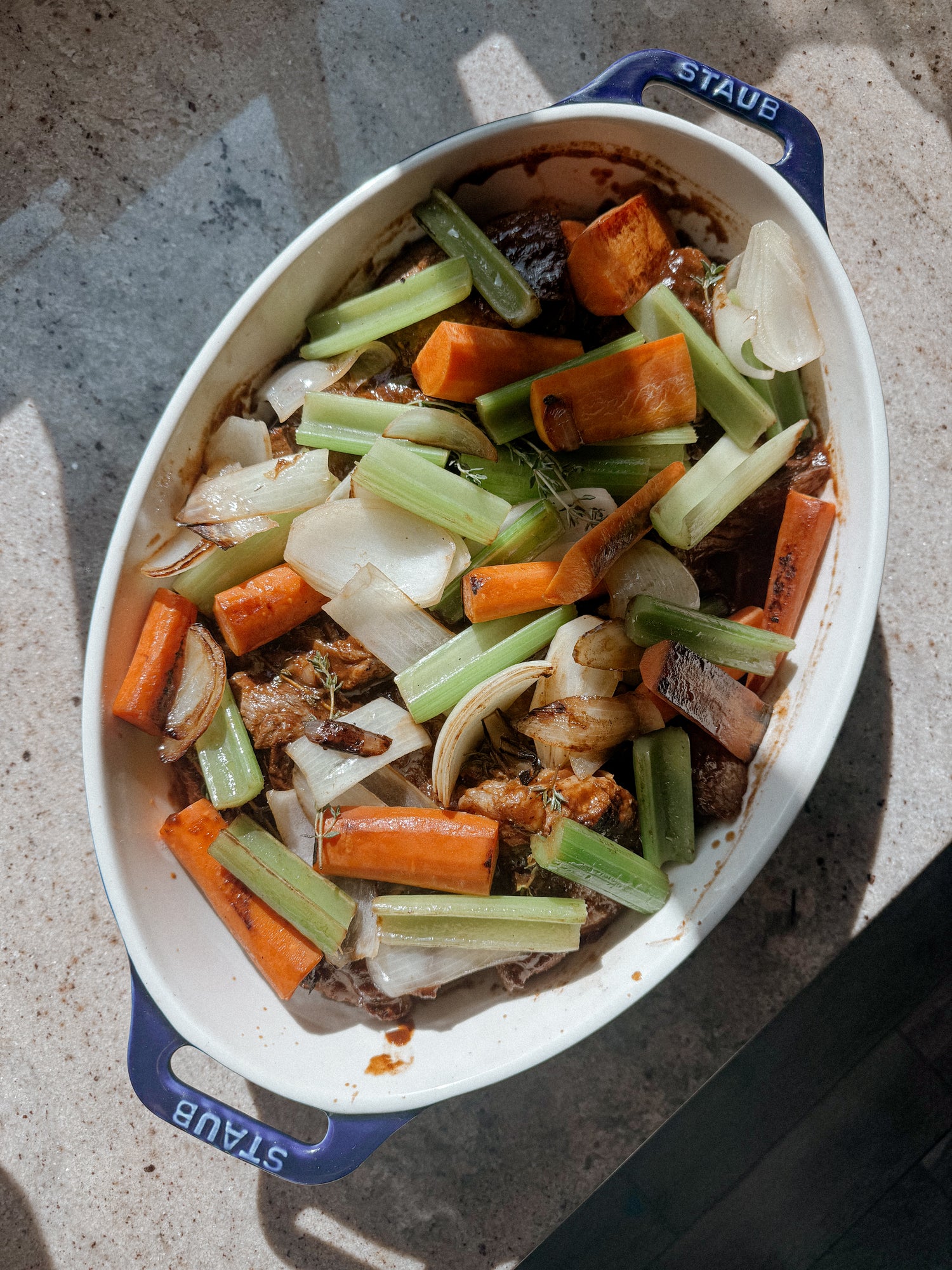 A timeless Sunday supper rooted in tradition. These braised short ribs are cooked gently until fall-apart tender, paired with rustic roasted vegetables and honest ingredients.